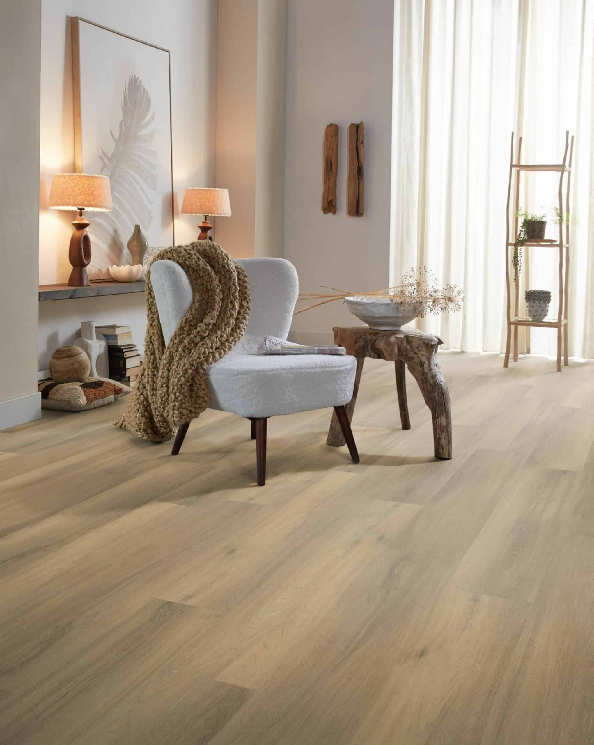 De Avanto pvc vloer heeft veel weg van een houten vloer, door deze natuurlijke uitstraling is deze vloer geschikt voor iedere woonstijl. Deze pvc vloer heeft een sterke toplaag, waardoor de vloer kras- en waterbestendig is. Je hoeft je dus geen zorgen te maken over de levensduur van deze vloer. Daarnaast is deze vloer al voorzien van een 10dB geluiddempende onderlaag, waardoor het contactgeluid wordt verminderd.