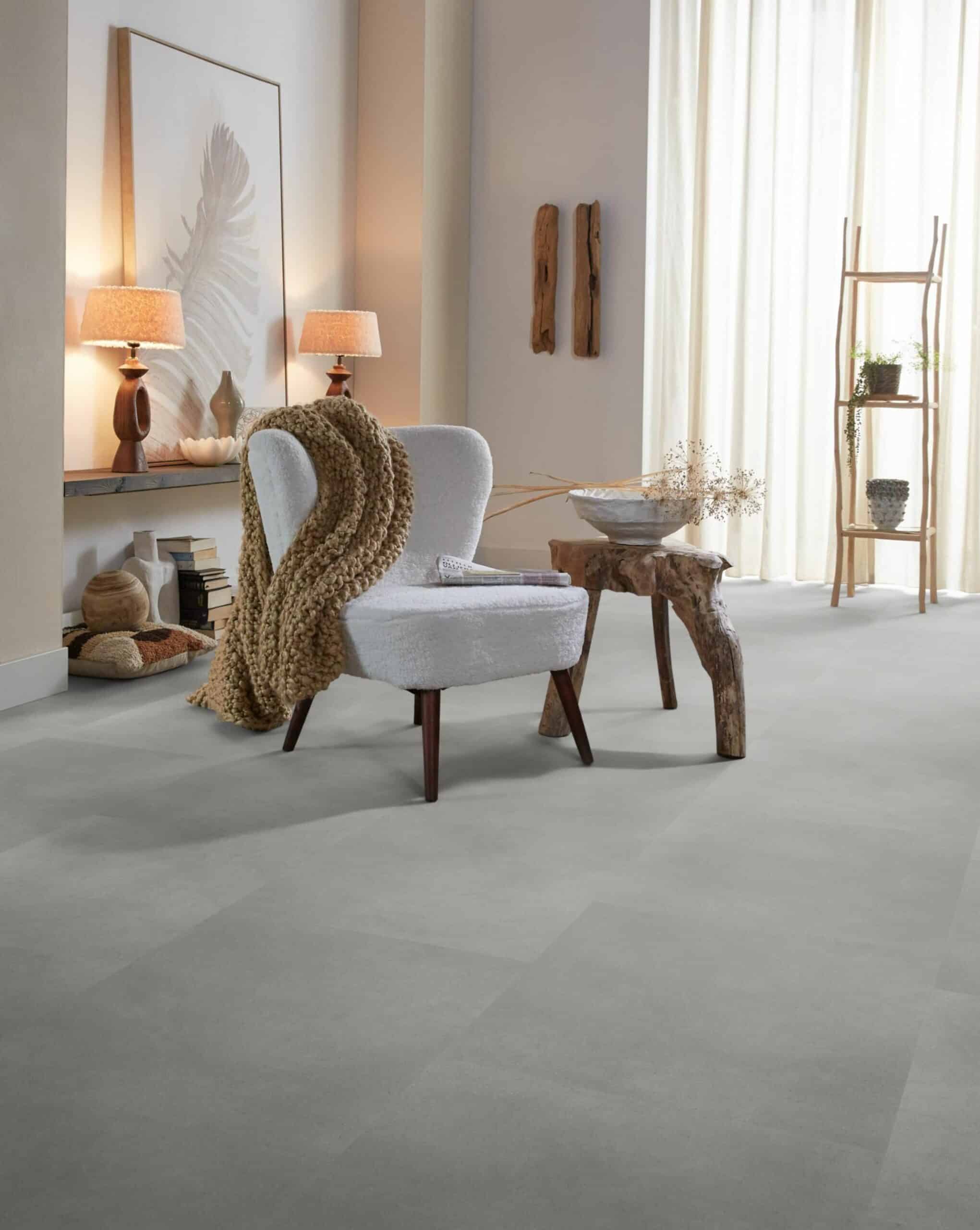 Als er één vloersoort trendy is, dan is het wel betonlook pvc. Zo’n minimalistische betonlook pvc vloer staat superstrak in huis en is nauwelijks te onderscheiden van echt beton. Deze betonlook tegel is verkrijgbaar in een rechthoekige tegel en in een extra groot formaat. Nog een bijkomend voordeel: deze pvc vloer is al voorzien van een ondervloer.