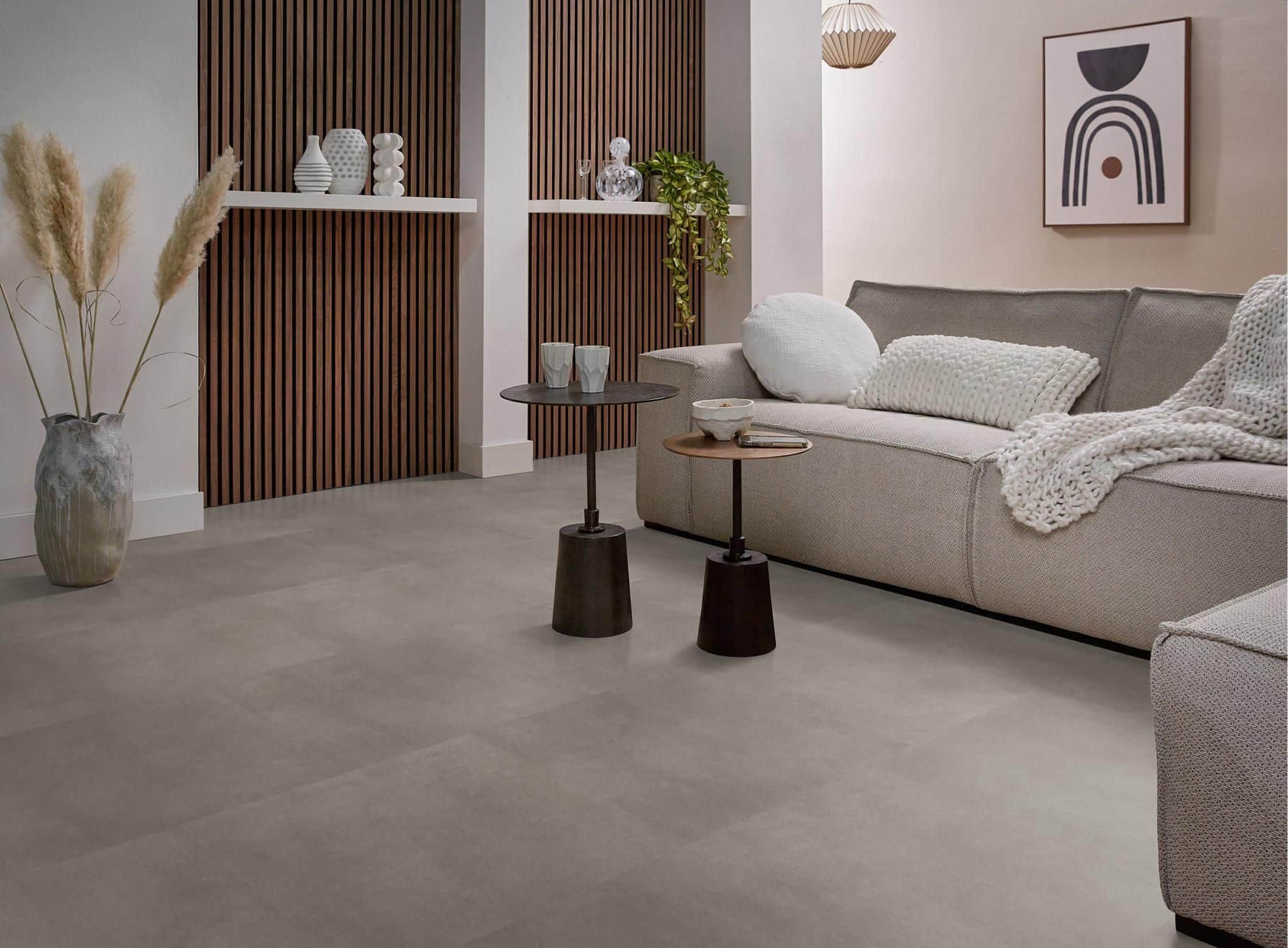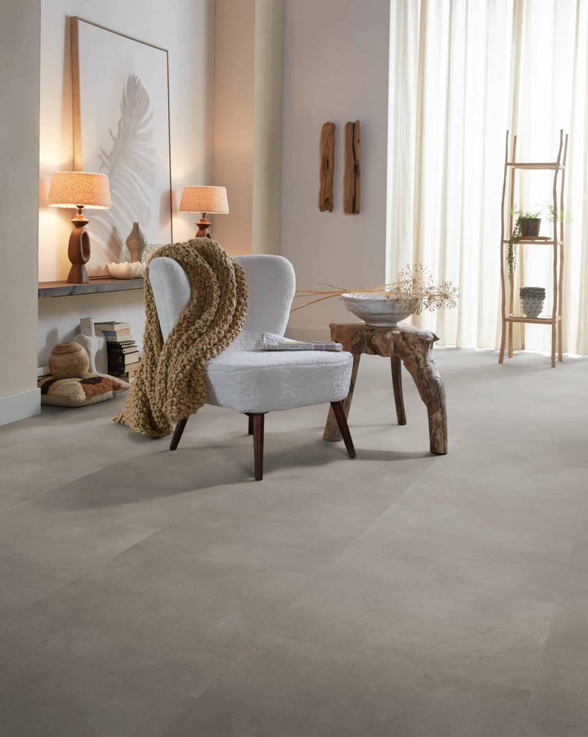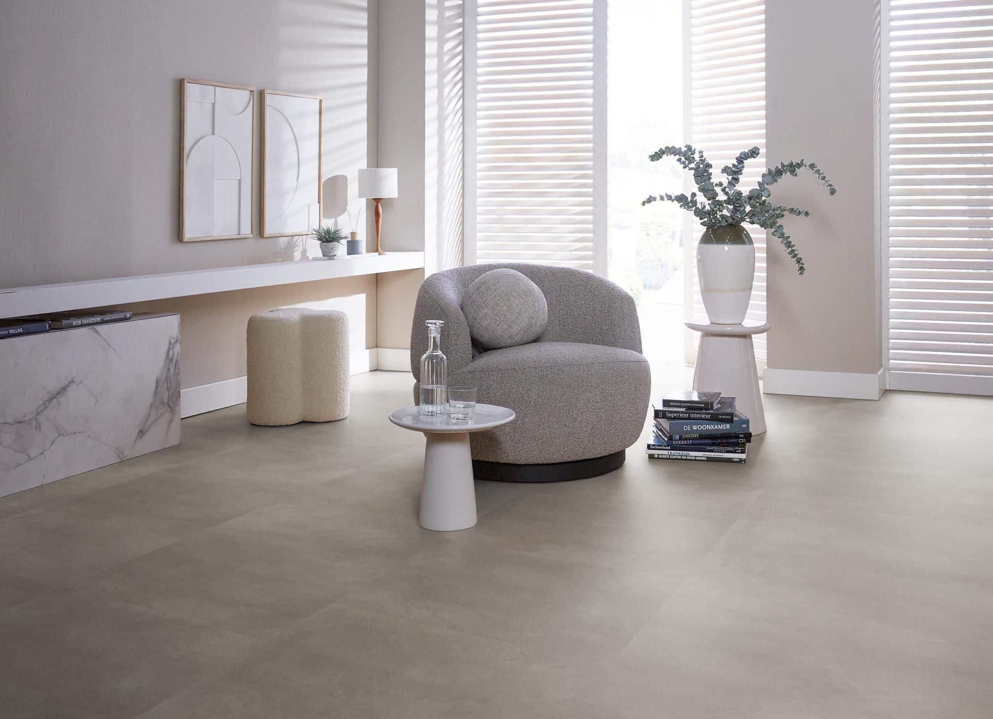 Als er één vloersoort trendy is, dan is het wel betonlook pvc. Zo’n minimalistische betonlook pvc vloer staat superstrak in huis en is nauwelijks te onderscheiden van echt beton. Deze betonlook tegel is verkrijgbaar in een rechthoekige tegel en in een extra groot formaat. Nog een bijkomend voordeel: deze pvc vloer is al voorzien van een ondervloer.