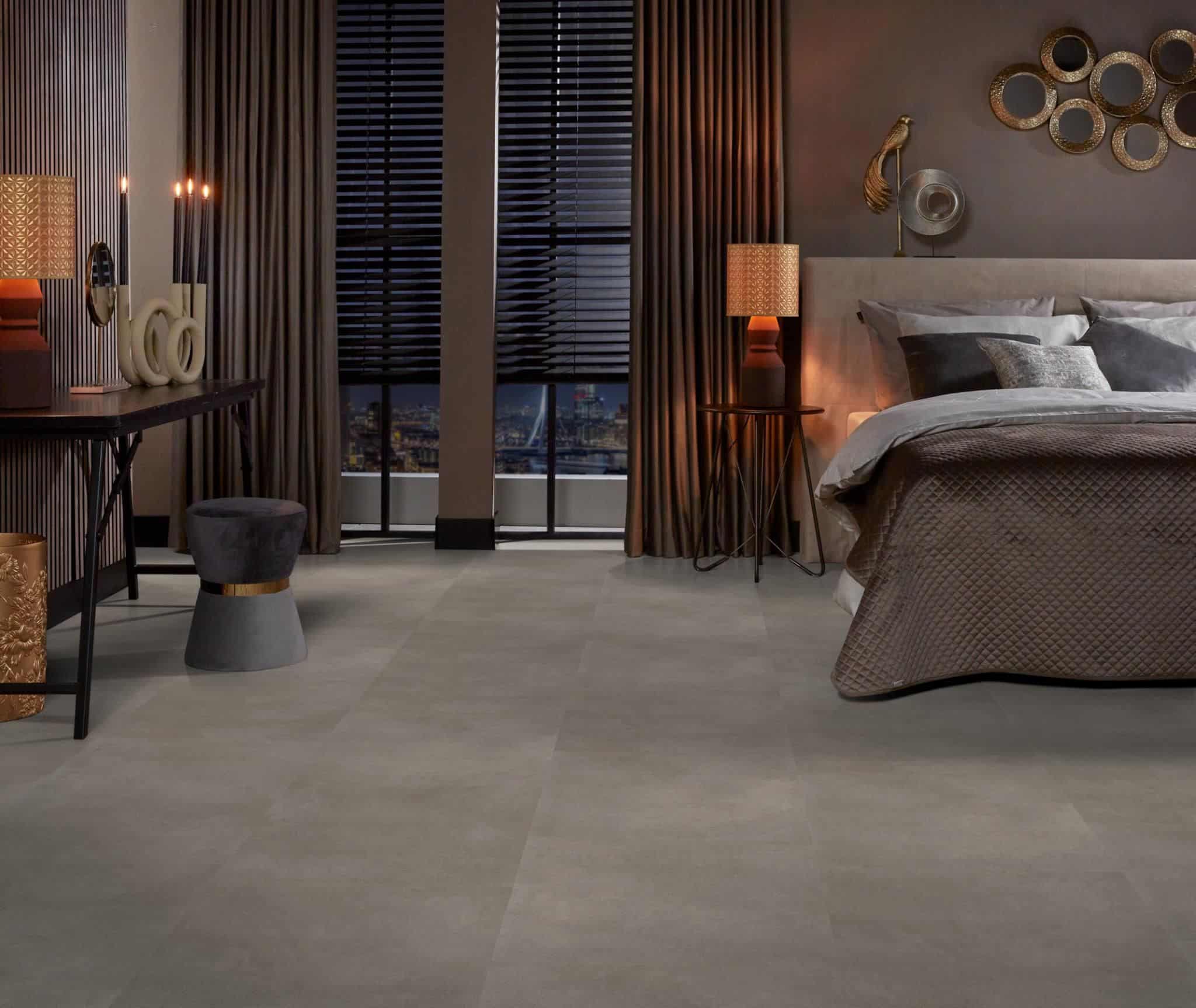 Als er één vloersoort trendy is dan is het wel betonlook pvc. Zo’n minimalistische betonlook pvc vloer staat superstrak in huis en is nauwelijks te onderscheiden van echt beton. Het grote voordeel van deze tegels is dat ze ook waterbestendig zijn, ideaal voor in de keuken. Daarnaast zijn ze ook voorzien van een 10dB geluiddempende onderlaag, hierdoor is de vloer heerlijk stil. Deze betonlook tegel is in XL-formaat met een afmeting van 81,2 x 40,6 cm en in een rechthoekige tegel verkrijgbaar.