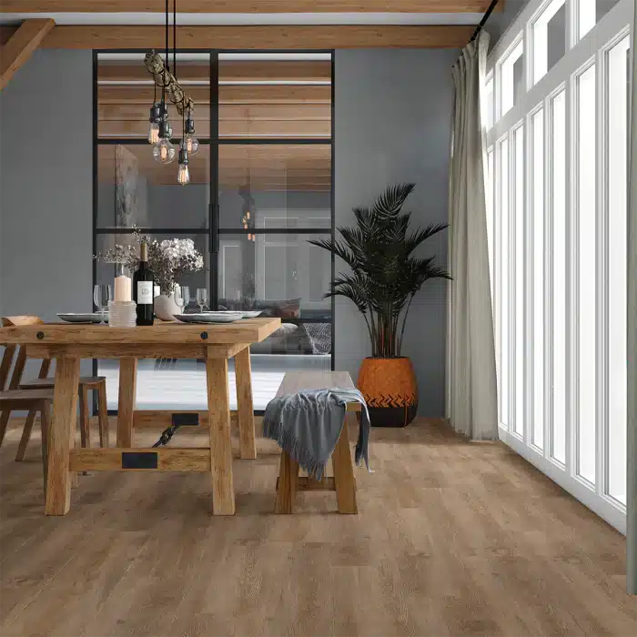 Stijlvolle vloer in een natuurlijke grijs-bruine eiken kleur. Voorzien van vaste ondervloer, geluiddempend, slijtvast en geschikt voor intensief gebruik. Eenvoudig te leggen dankzij klikverbinding.