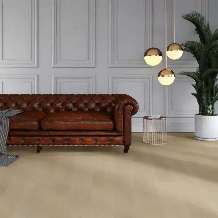 Luxe PVC vloer met geïntegreerde ondervloer en natuurlijke bruin eiken look. Geluiddempend, slijtvast en eenvoudig te leggen dankzij klikverbinding. Geschikt voor intensief gebruik en vloerverwarming.
