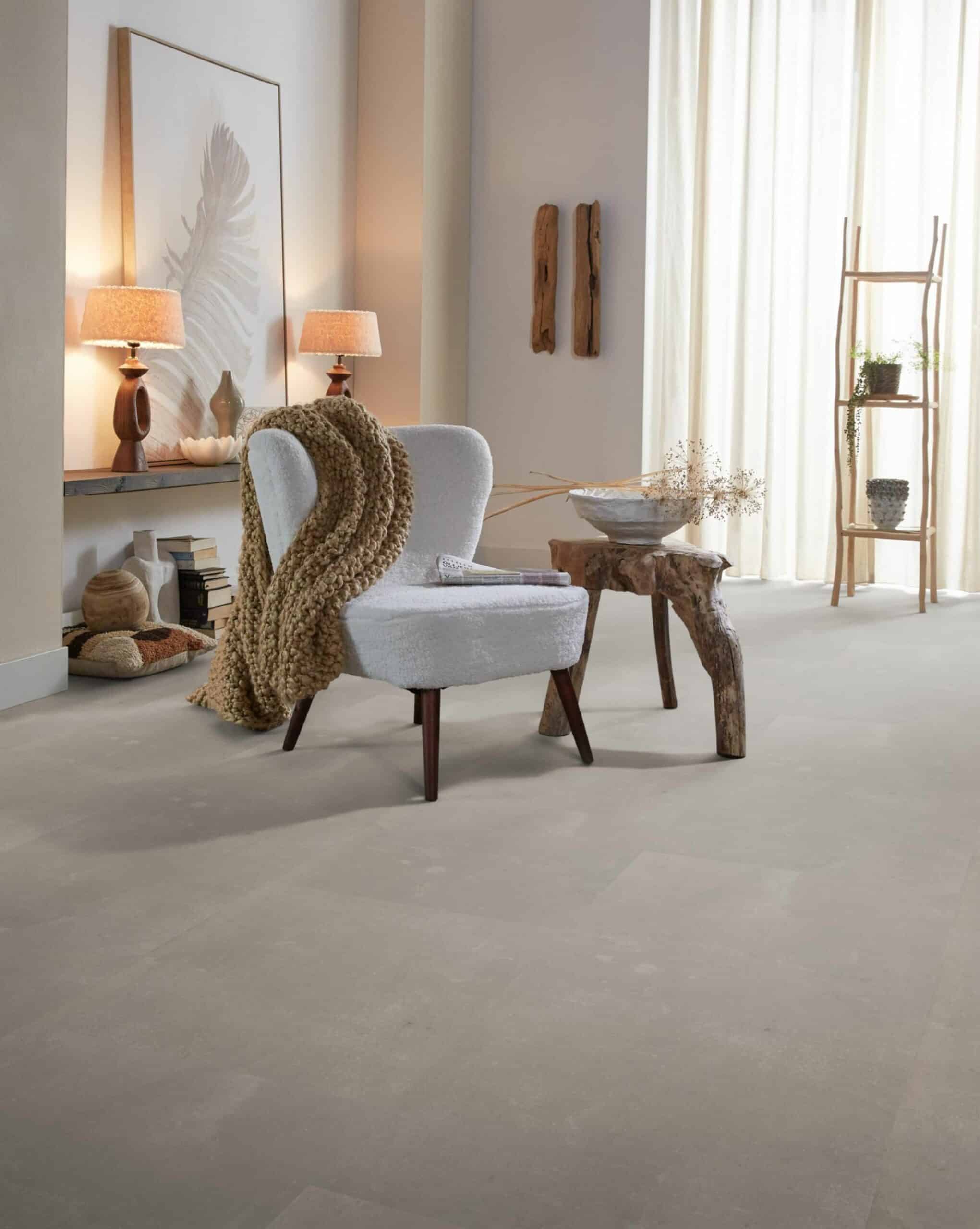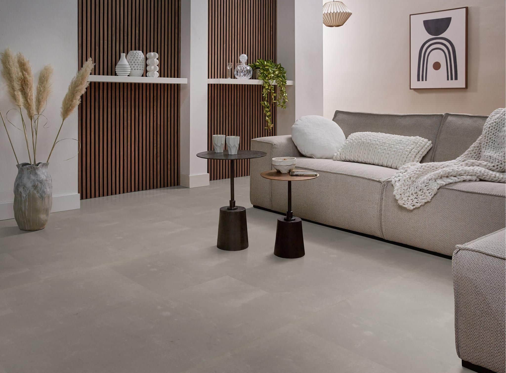 De Ceramo is een trendy betonlook tegel van maar liefst 60 x 60 cm. De tegel heeft een all-over structuur en past perfect in een strak en trendy interieur. Geef je trap dezelfde look & feel als de vloer op de beneden- en bovenverdieping. Zo loopt de vloer prachtig door en creëer je één geheel in de woning. De click uitvoering is ook verkrijgbaar in een rechthoekig formaat met een afmeting van 81,2 x 40,6 cm.