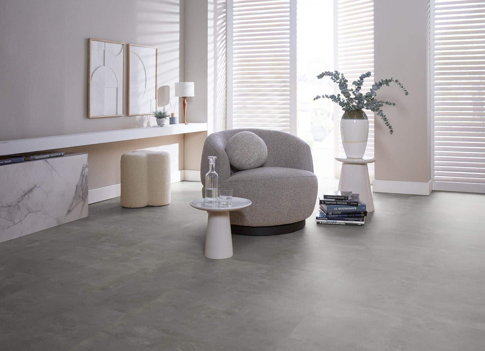 De Ceramo dryback is een trendy betonlook tegel van maar liefst 60 x 60 cm. De tegel heeft een all-over structuur en past perfect in een strak en trendy interieur. Deze vloer kenmerkt zich door zijn waterbestendigheid, waardoor deze ook geschikt is voor in de keuken. De tegel is geschikt voor vloerverwarming en voorzien van een 0,55 mm toplaag, dat zorgt voor een lange levensduur.