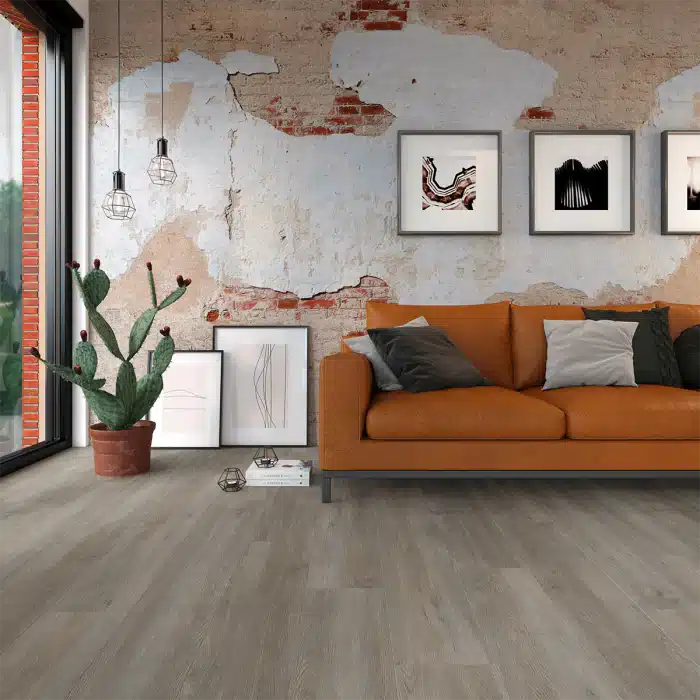 Stijlvolle PVC vloer in een natuurlijke mix van grijs en lichtbruin eiken. Voorzien van geïntegreerde ondervloer en geschikt voor intensief gebruik. Geluiddempend, onderhoudsarm en eenvoudig te leggen.
