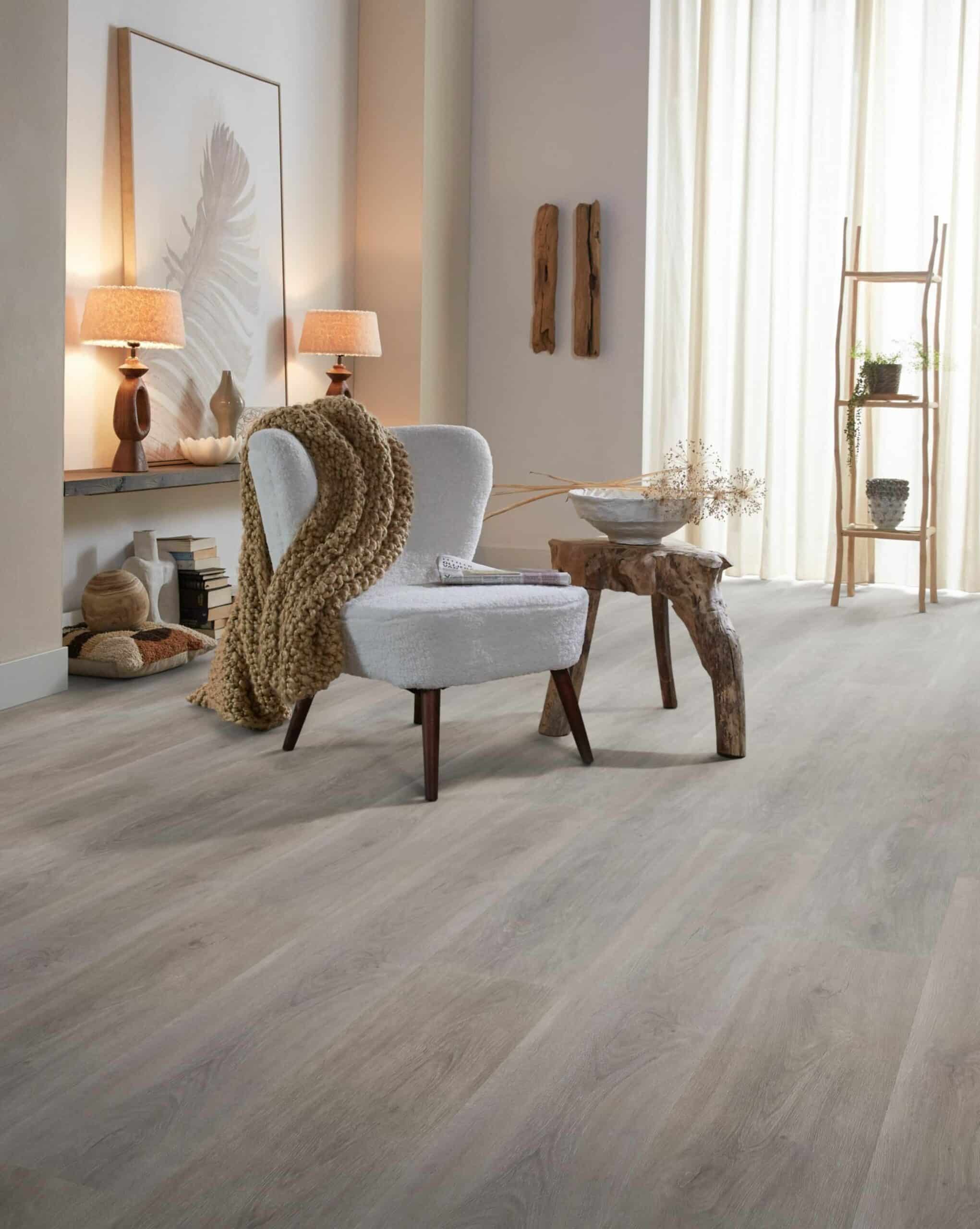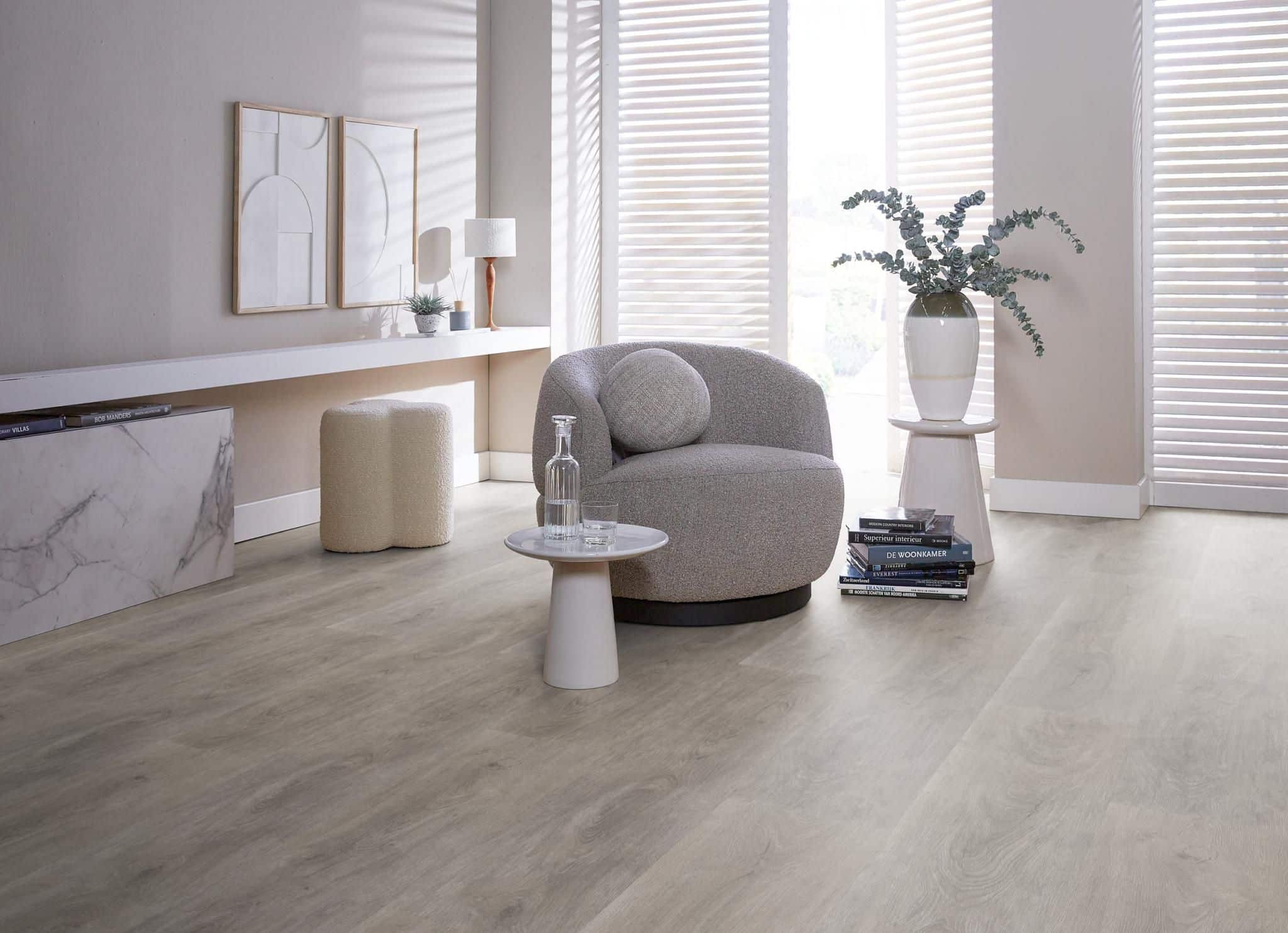 Deze prachtige pvc vloer is te herkennen aan zijn extra brede en lange planken (153 x 25,3 cm). De vloer heeft een natuurgetrouwe structuur die exact de houtprint volgt en heeft daarnaast een subtiele V-groef. Een bijkomend voordeel is dat deze pvc vloer maar weinig onderhoud nodig heeft. De click variant is voorzien van een 10dB geluiddempende onderlaag, dus een je kunt genieten van een heerlijk stille vloer!