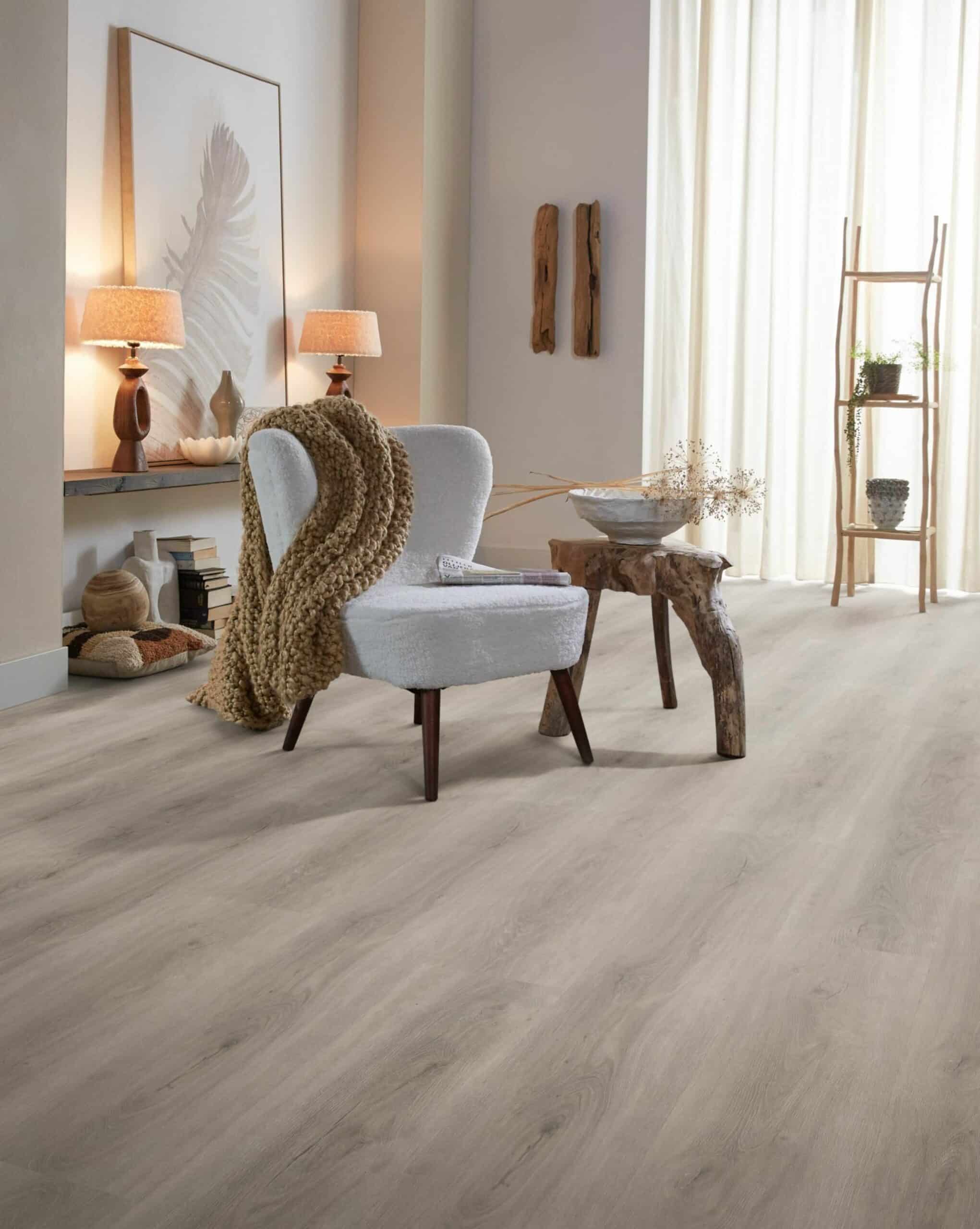 Deze prachtige pvc vloer is te herkennen aan zijn extra brede en lange planken (153 x 25,3 cm). De vloer heeft een natuurgetrouwe structuur die exact de houtprint volgt en heeft daarnaast een subtiele V-groef. Een bijkomend voordeel is dat deze pvc vloer maar weinig onderhoud nodig heeft. De click variant is voorzien van een 10dB geluiddempende onderlaag, dus een je kunt genieten van een heerlijk stille vloer!