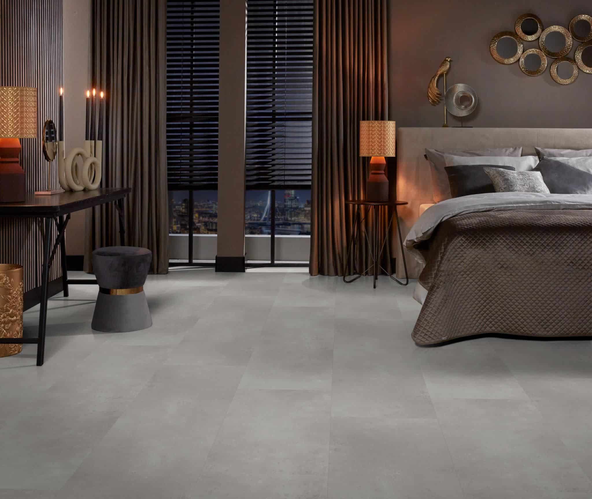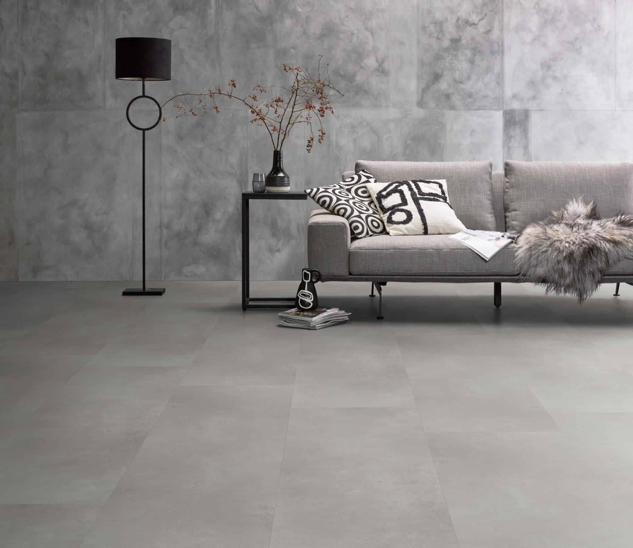Verliefd op een betonnen vloer, maar is dit voor jouw woning helaas geen optie? De Sarino is een goed alternatief! Deze betonlook vloer is verkrijgbaar in twee tegelformaten: vierkant en rechthoekig. Daarnaast wordt deze vloer aangeboden in vier grijstinten passend bij elke woonstijl. Combineer deze pvc vloer met hout of aardetinten, voor een warme uitstraling in jouw interieur.