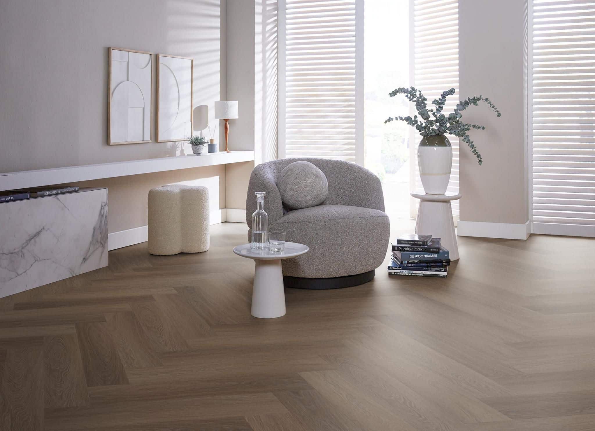 Visgraat is dé trend van dit moment. Het natuurgetrouwe dessin van de Spigato Estino visgraat is een eyecatcher in ieder interieur. Door de stijlvolle kleuren, krijgt jouw interieur direct een warme uitstraling. De mogelijkheden zijn eindeloos. De click variant van deze vloer is voorzien van een 10 dB geluiddempende onderlaag, hierdoor is de vloer heerlijk stil.
