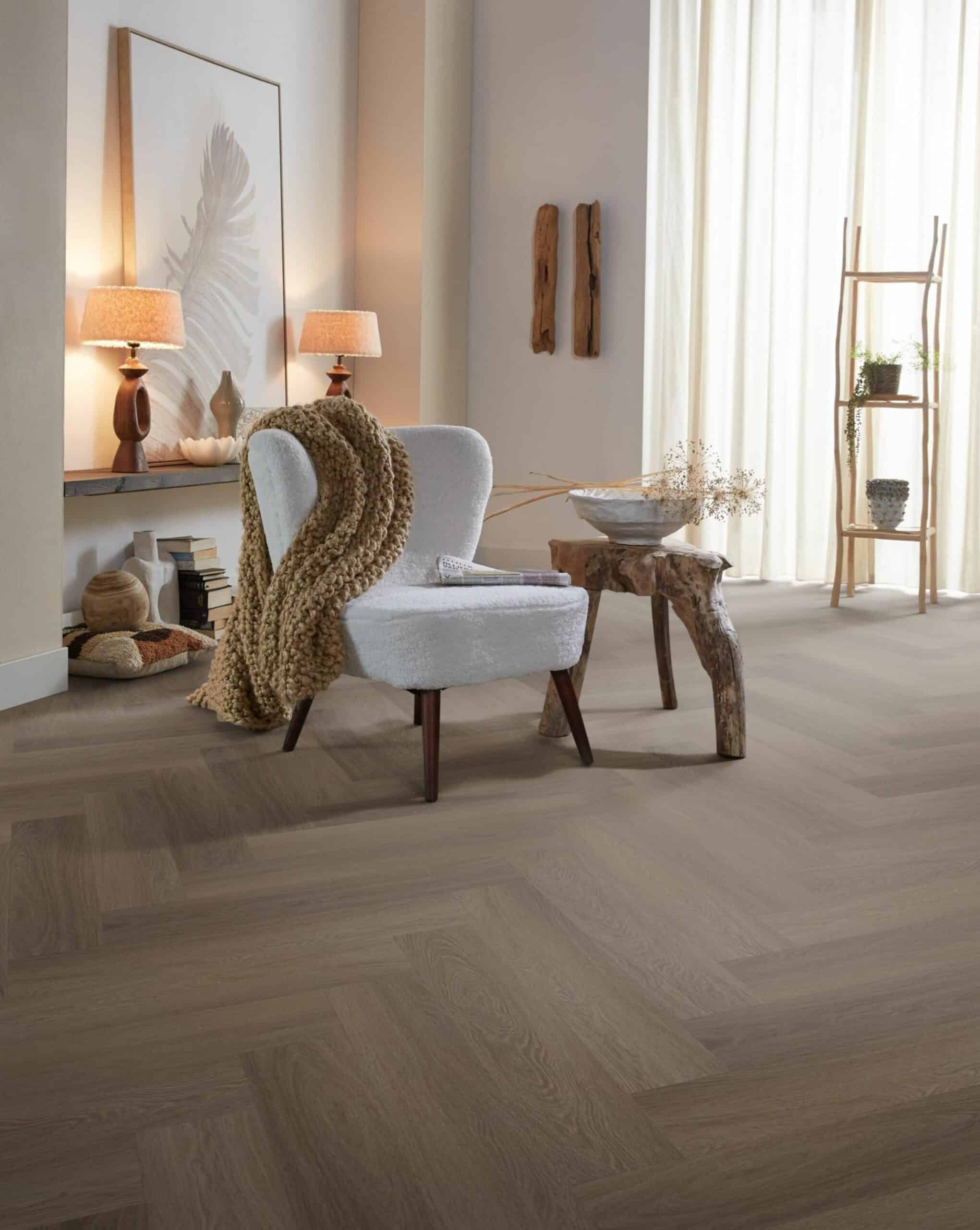 Visgraat is de trend van dit moment. Het natuurgetrouwe dessin van de Spigato Estino is een eyecatcher in ieder interieur. Door de stijlvolle kleuren, krijgt jouw interieur direct een warme uitstraling. Deze pvc visgraat vloer kan ook gelegd worden met een bies. De mogelijkheden zijn eindeloos.