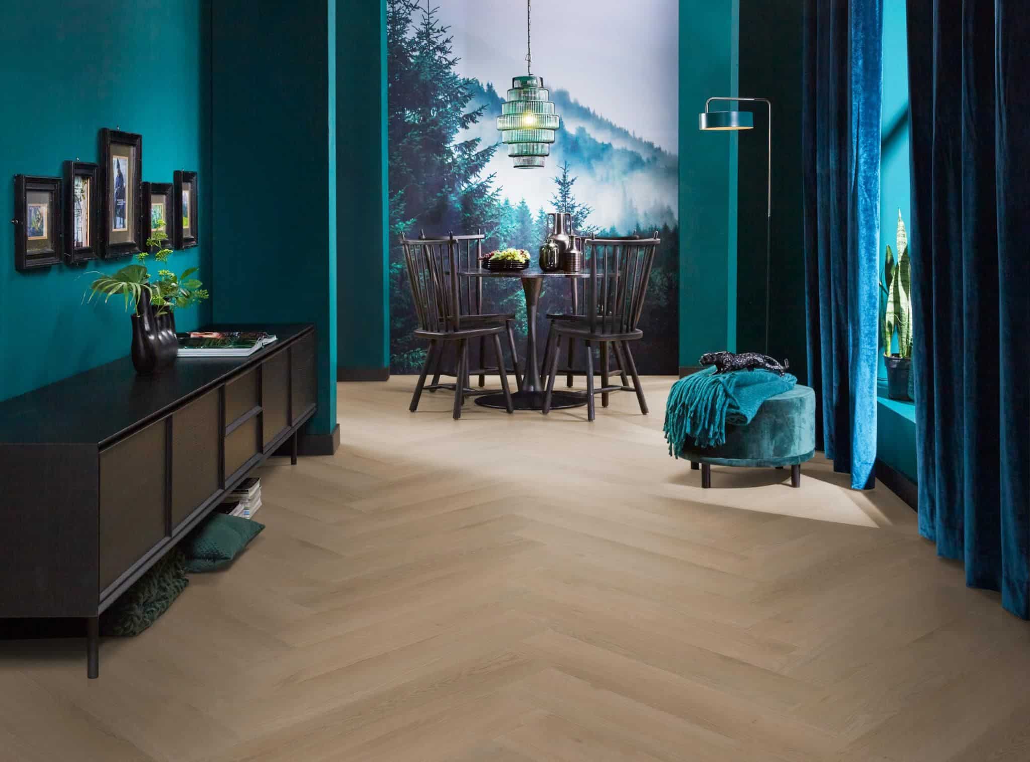 Deze visgraat vloer is één van de populairste pvc vloeren van dit moment. Dat komt niet alleen door het uiterlijk, maar ook door de kenmerken. Deze pvc vloer heeft veel voordelen: lange levensduur, waterbestendig en weinig onderhoud. Combineer de Spigato Navaro Visgraat met zwarte plinten uit de Co-pro collectie, een perfecte match!