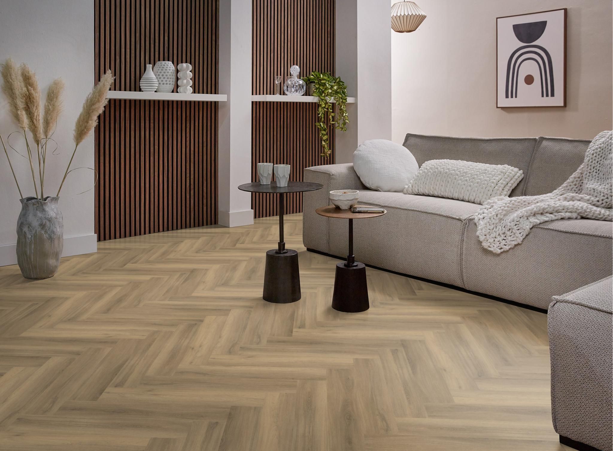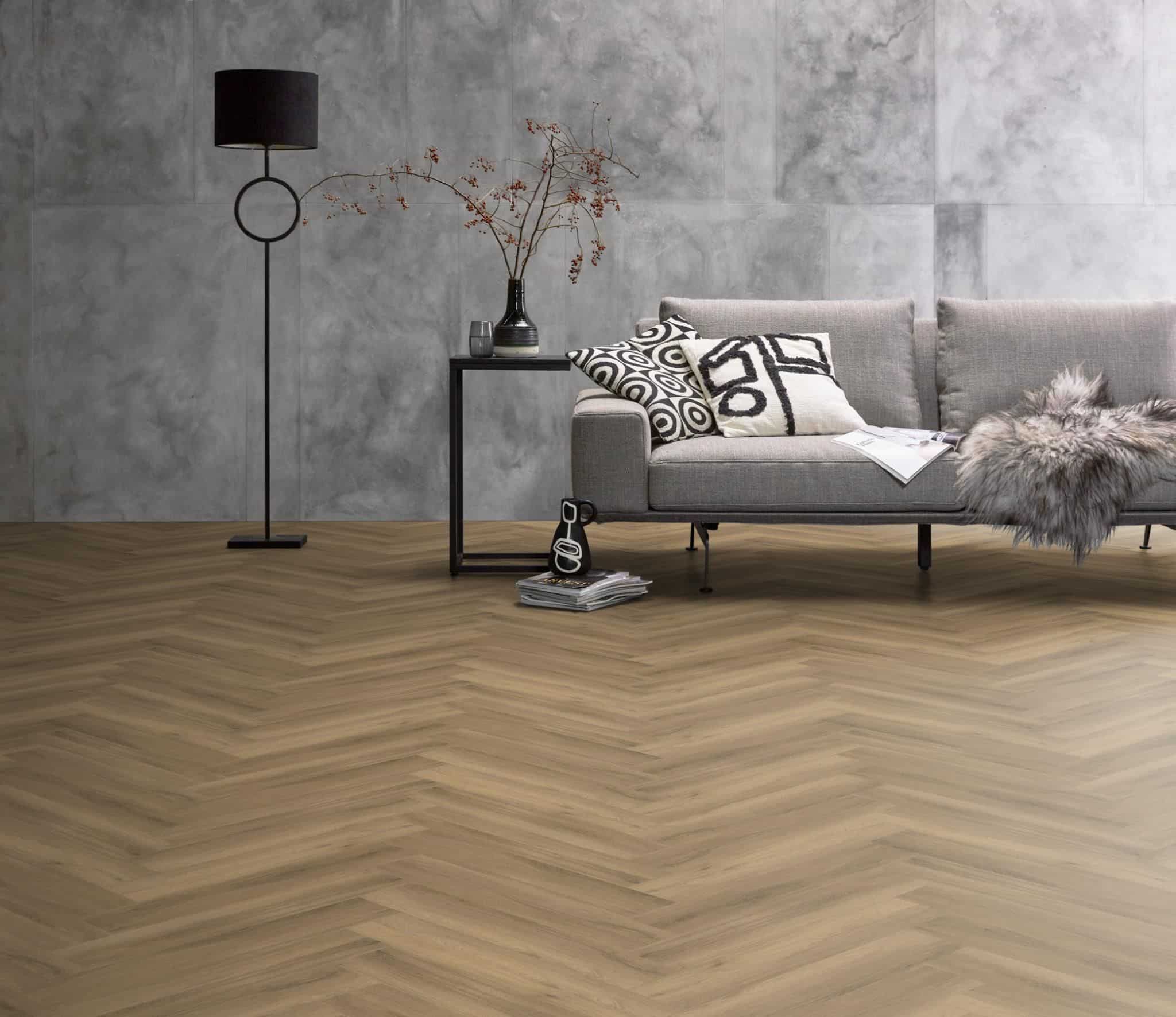 Ontdek de moderne uitstraling van visgraat pvc. Deze pvc vloer in visgraat is niet meer weg te denken uit de huidige woontrends en is nauwelijks van een houten vloer te onderscheiden, door de kleine noesten. Deze vloer is 7 mm dik en heeft een toplaag van 0.55 mm die de vloer beschermd en krasbestendig maakt. Een bijkomend voordeel: deze pvc vloer is geschikt voor appartementen vanwege de vermindering van het contactgeluid.