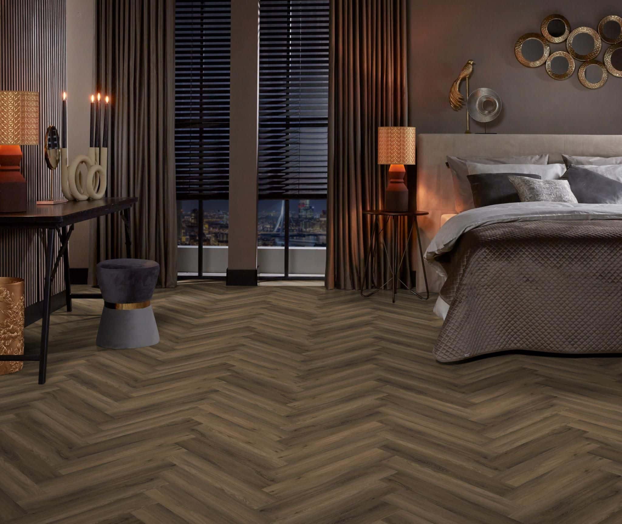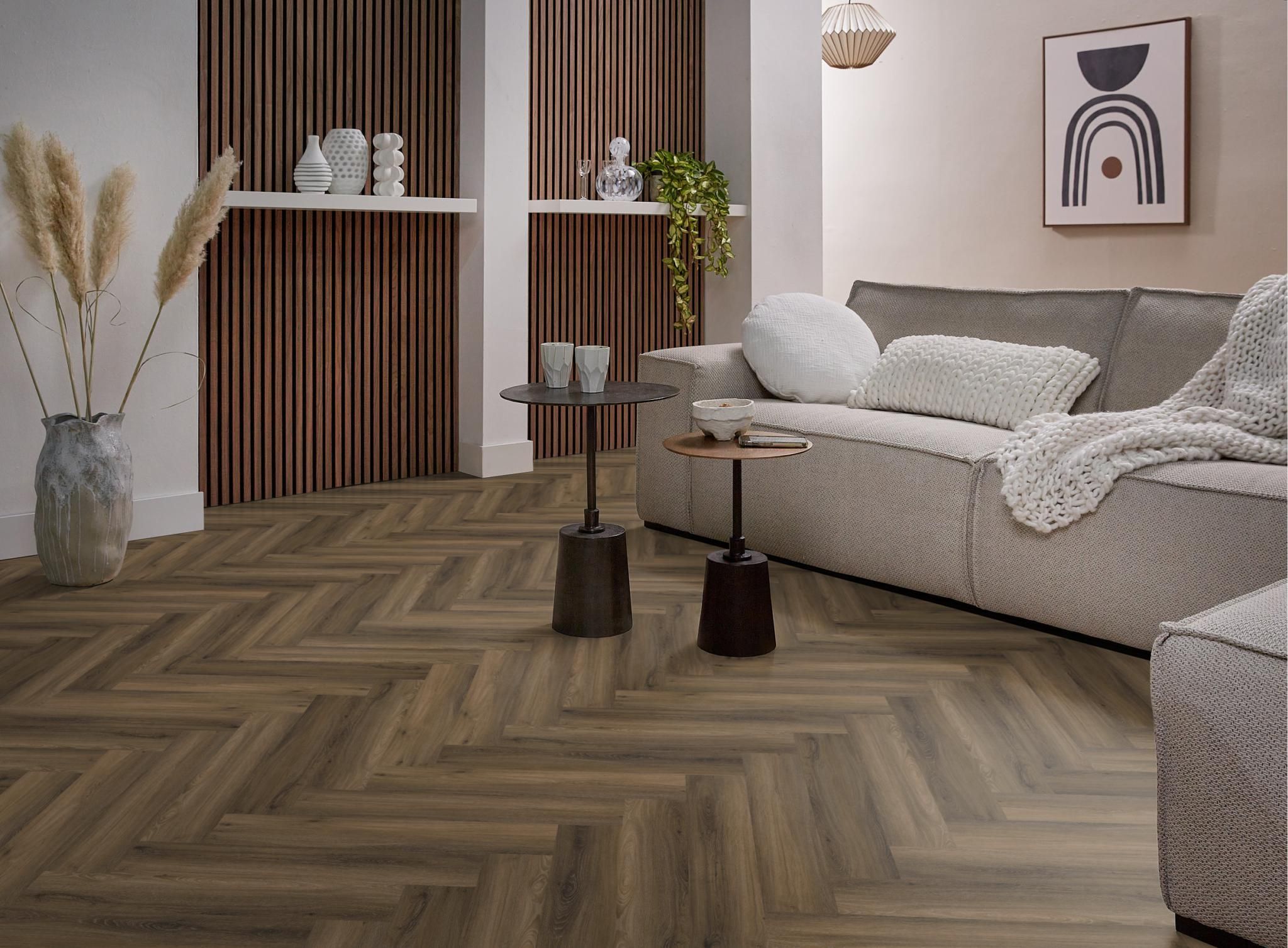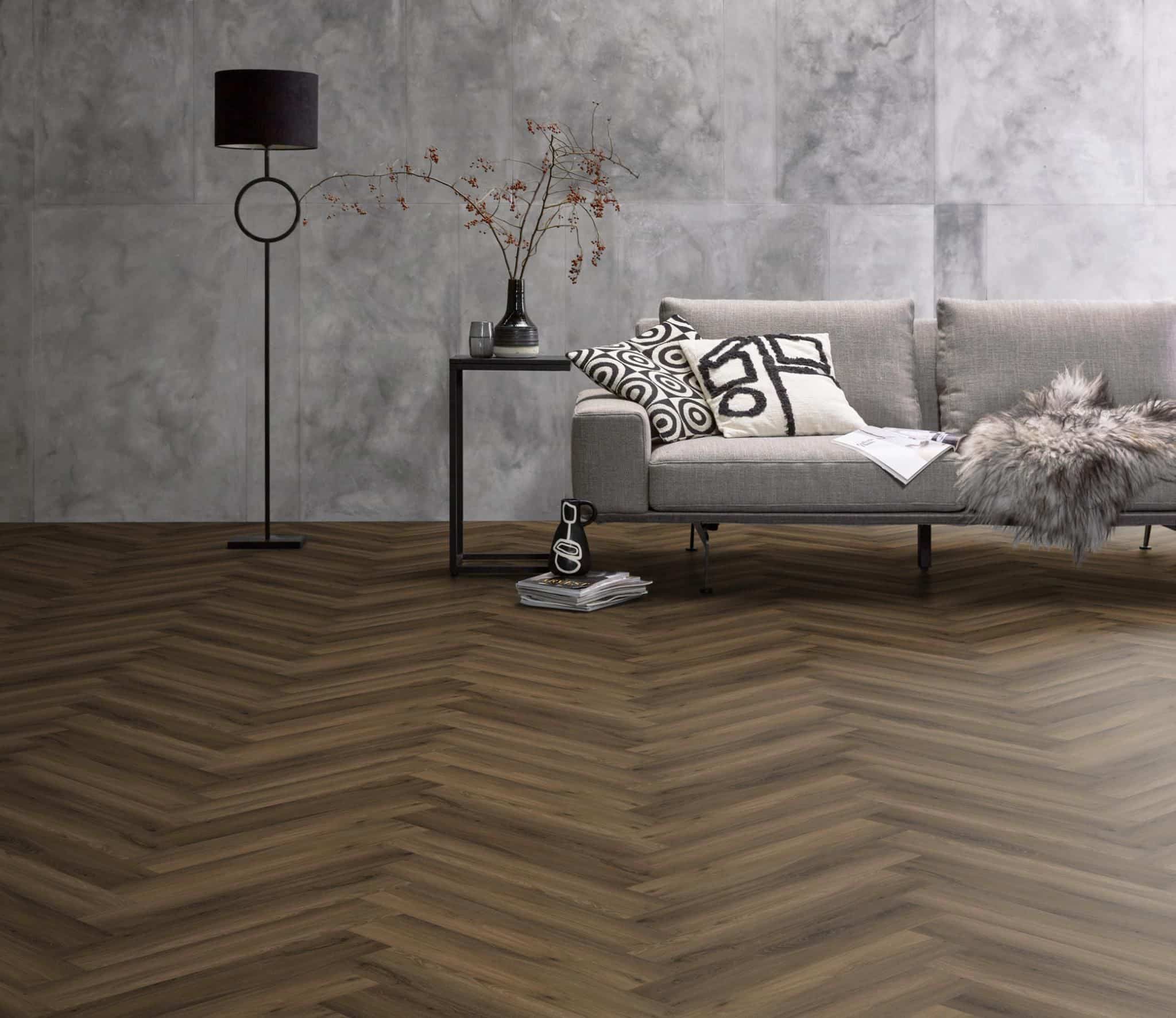 Ontdek de moderne uitstraling van visgraat pvc. Deze pvc vloer in visgraat is niet meer weg te denken uit de huidige woontrends en is nauwelijks van een houten vloer te onderscheiden, door de kleine noesten. Deze vloer is 7 mm dik en heeft een toplaag van 0.55 mm die de vloer beschermd en krasbestendig maakt. Een bijkomend voordeel: deze pvc vloer is geschikt voor appartementen vanwege de vermindering van het contactgeluid.