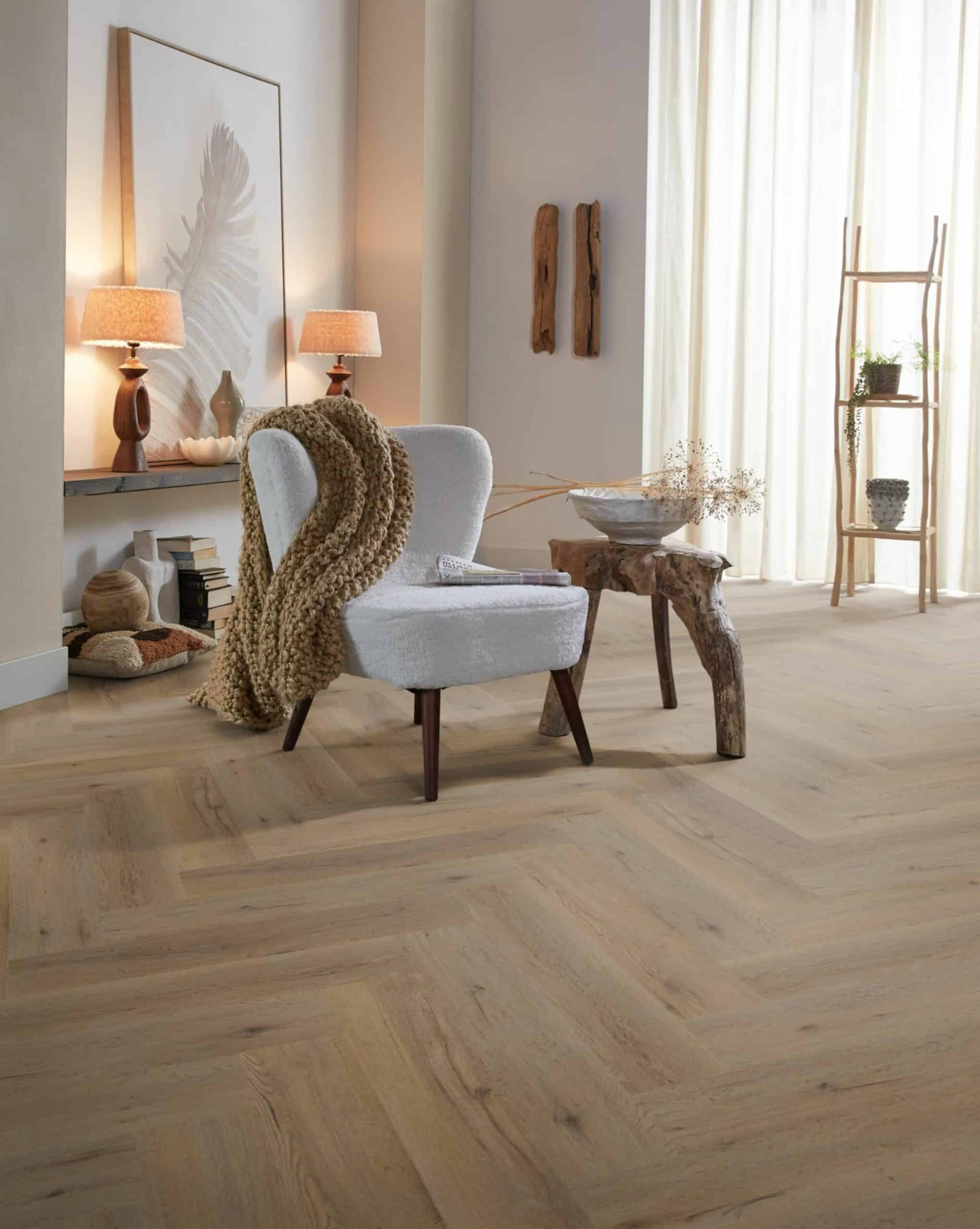 Een visgraatvloer is erg populair en past in iedere woonstijl. De Spigato Vivero visgraat is erg geschikt voor vloerverwarming en te leggen in vochtige ruimtes, zoals de keuken. Door de slijtlaag van 0,55 mm is deze vloer ook nog eens krasbestendig. De clickvariant is voorzien van een geluiddempende onderlaag, die zorgt dat het contactgeluid wordt verminderd.