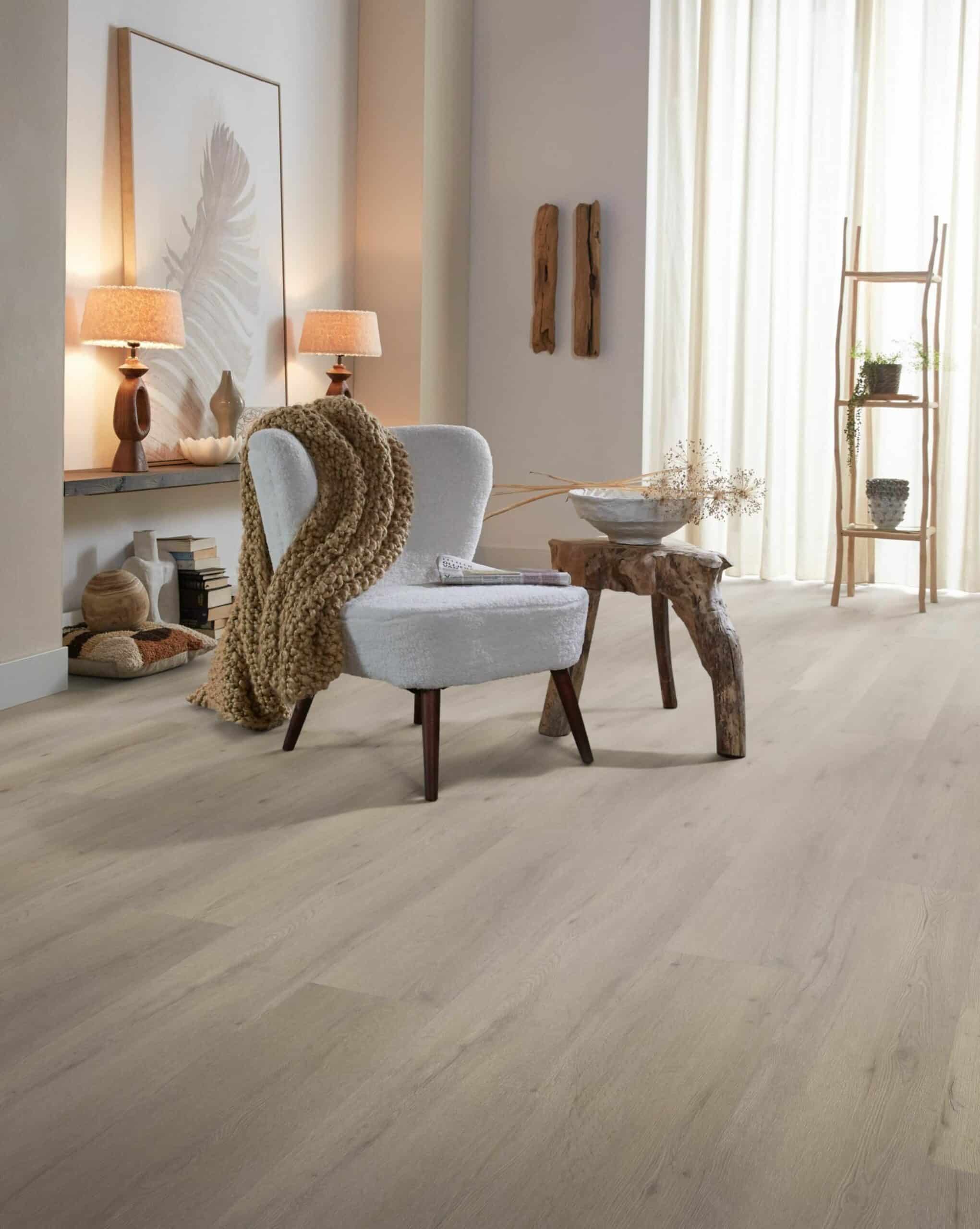 De Vivero is een pvc vloer met een natuurlijke houten uitstraling, geschikt voor elk interieur. Door de lange planken van maar liefst 152 cm lijkt je ruimte een stuk groter en wordt de beleving van een echte houten vloer extra benadrukt. Deze vloer is eenvoudig te leggen door zijn 7 mm dikte en is voorzien van geïntegreerde ondervloer. Hierdoor is de vloer ook geschikt voor appartementen vanwege de geluidsreducerende werking.