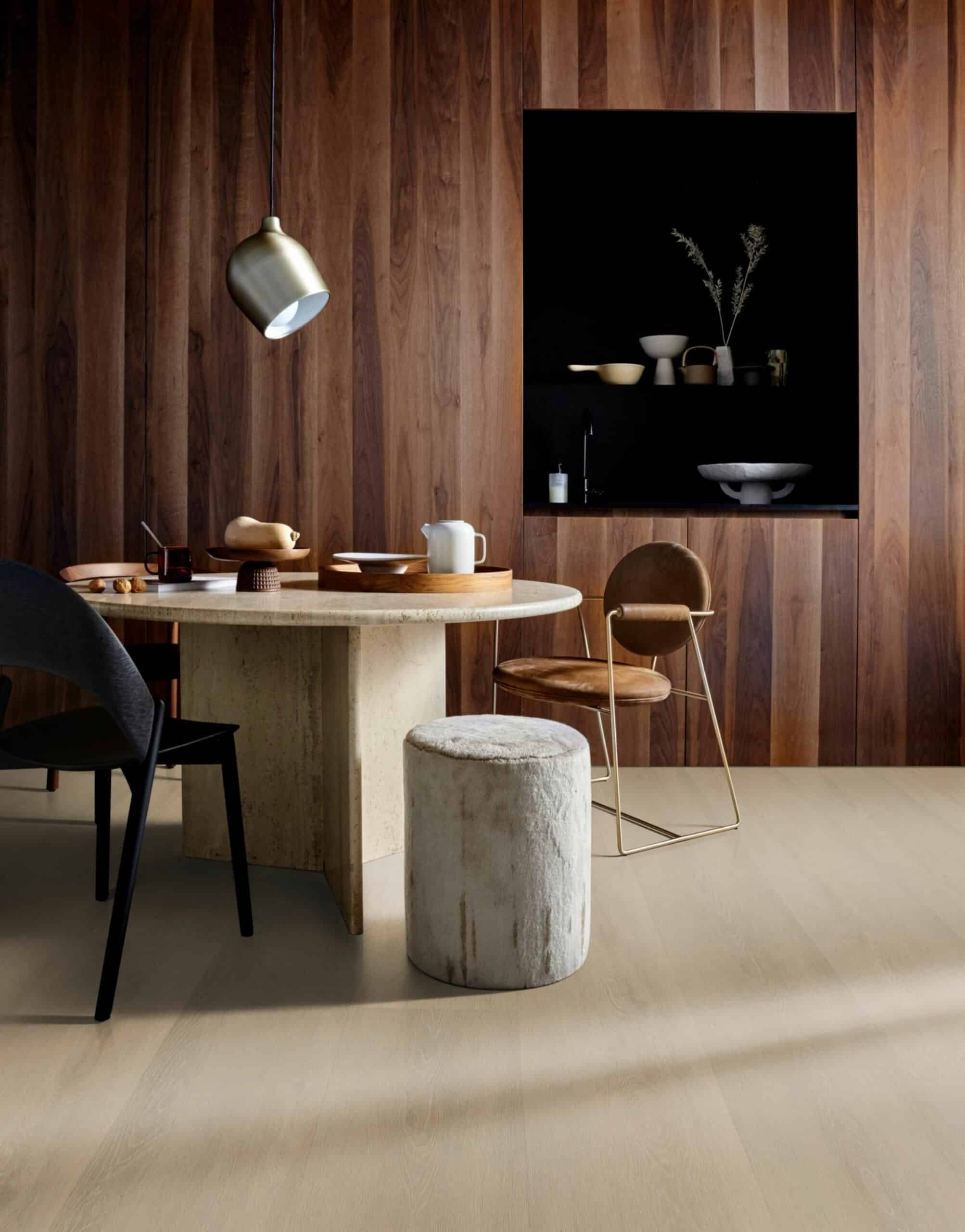 De warme uitstraling van deze vloer brengt met recht sfeer in je woning. De extra brede en lange planken laten elke ruimte groter lijken. Ideaal als je niet zoveel ruimte hebt of juist luxe als je al een ruime woonkamer hebt. Het levendige patroon van de vloer is bijna niet van een echte houten vloer te onderscheiden.