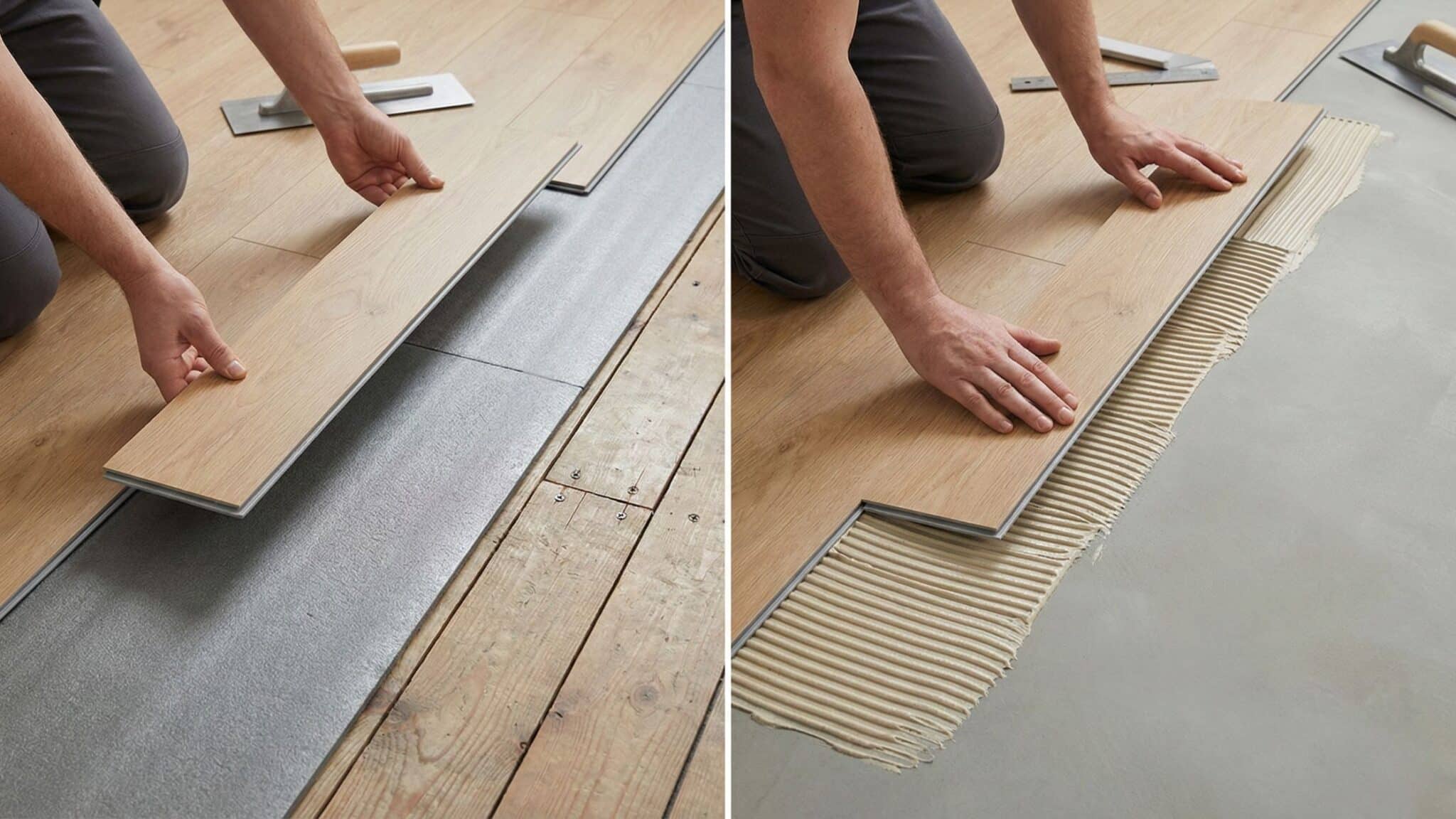 Vergelijking tussen klik pvc en lijm pvc op een houten ondervloer