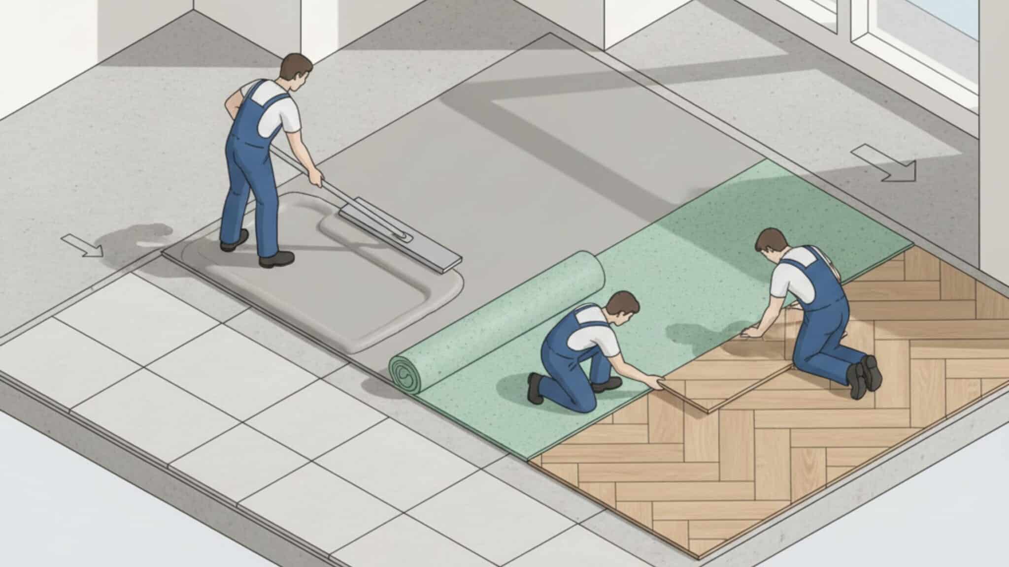 - Egaliseer indien nodig → vooral voegen vullen en vloer vlak maken.